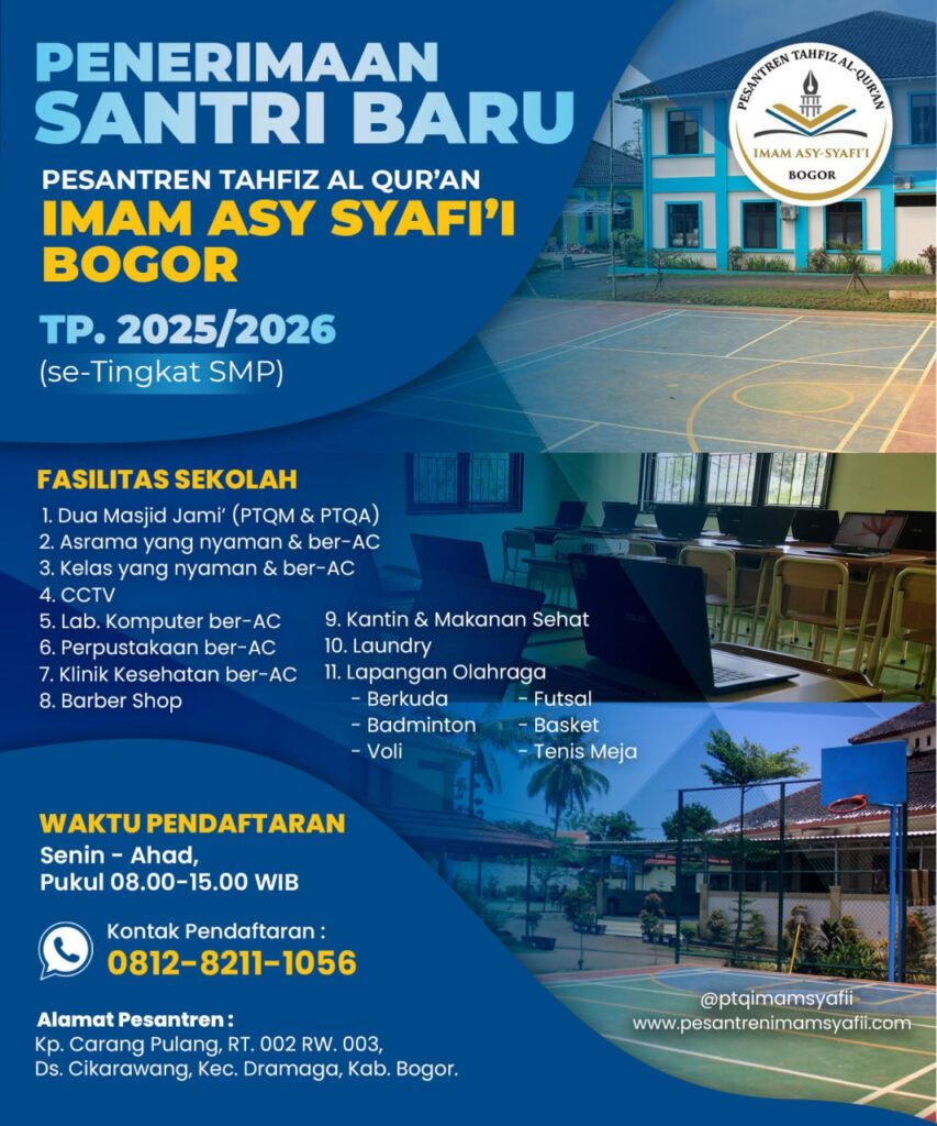 Putra-putra Anda juga berkesempatan menjadi hafiz Qur’an seperti siswa-siswa PTQ Imam Syafi’i tersebut. Anda bisa mendaftarkan putra-putranya ke PTQ Imam Syafi’i. Info selengkapnya ada di sini: PPDB PTQ IMAM SYAFI’I TP 25/26