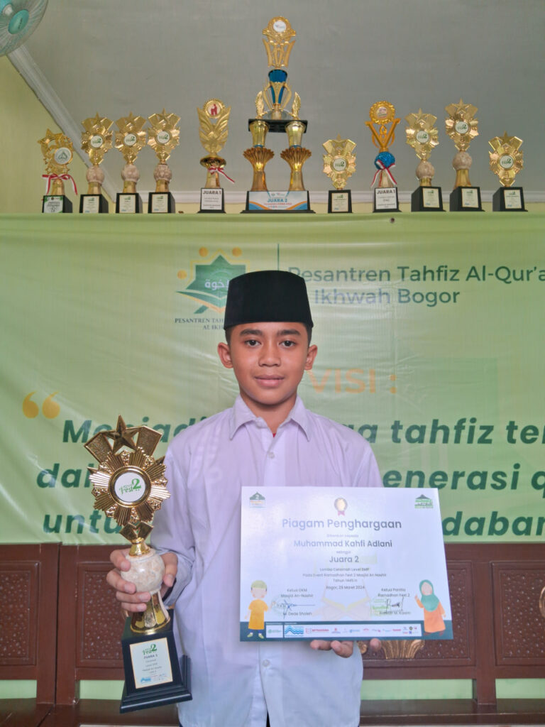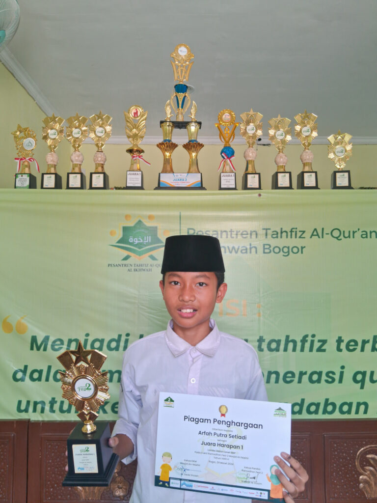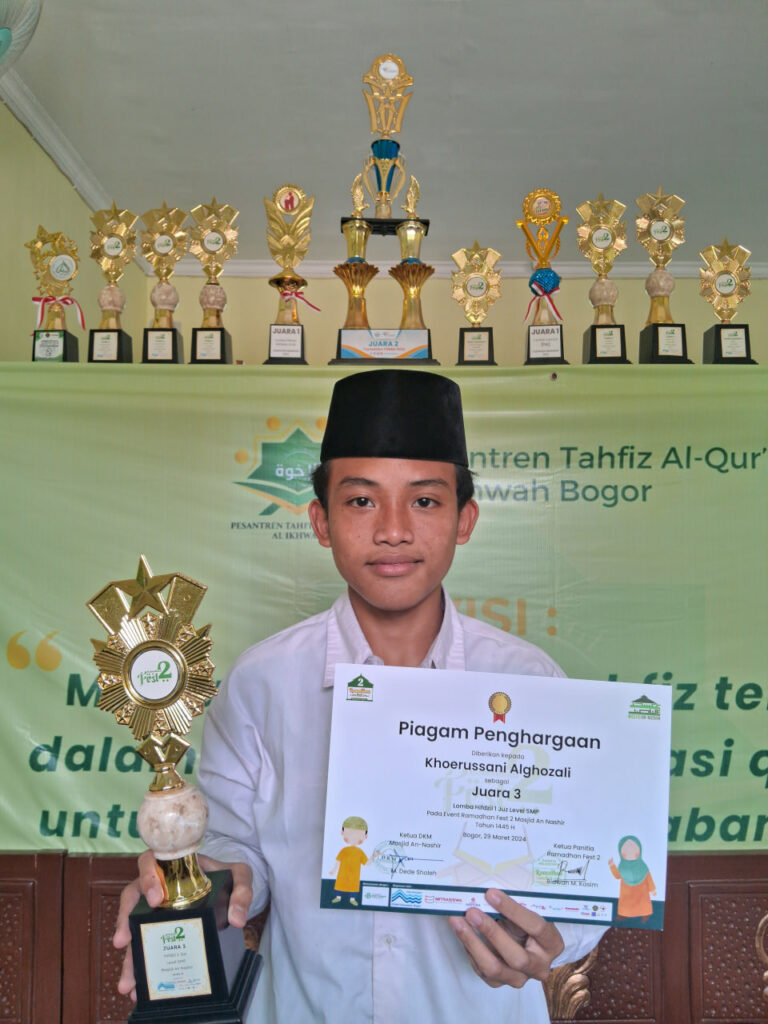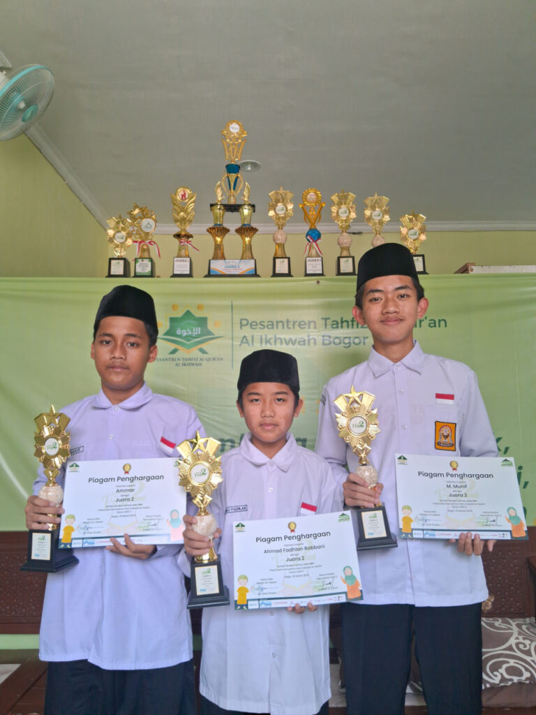 Alhamdulillah, ayah bunda.. Kabar gembira kembali datang dari Pesantren Tahfiz Qur’an (PTQ) Al-Ikhwah Bogor, salah satu pesantren di bawah naungan Yayasan Islam Al Huda Bogor. Pada hari Jum’at 29 Maret 2024 bertepatan dengan 18 Ramadhan 1445 H santri-santri PTQ Al-Ikhwah memborong 6 juara dalam perlombaan Ramadhan Fest II yang diselenggarakan oleh DKM Masjid An-Nashir, Ciampea, Dramaga, Bogor.