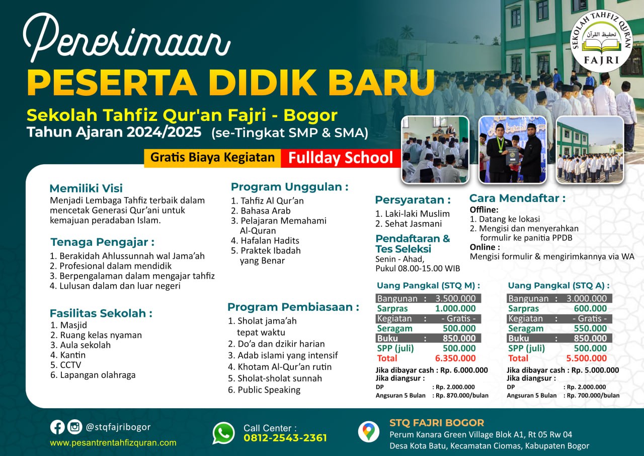 Dalam rangka mempelopori berdirinya suatu sistem pendidikan yang terbaik, maka Sekolah Tahfiz Qur’an (STQ) Hasmi Putra menghadirkan Program Pendidikan Islami Unggulan yang kami yakini kesuksesannya dalam membentuk generasi Islam di masa yang akan datang. Kurikulum Pendidikan yang kami terapkan adalah perpaduan antara kurikulum Diniyyah (Agama Islam) dan Kurikulum Pendidikan Nasional (DIKNAS). Dengan perpaduan kurikulum tersebut akan lahir generasi terbaik yang Rabbani dan berwawasan global.