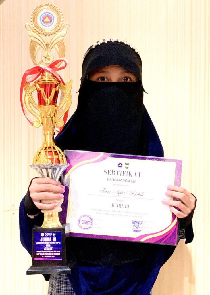 Dalam kompetisi yang cukup ketat ini, Tiara Aqila Mufidah (siswi kelas 5 SDIT Al Hidayah Cibinong), berhasil meraih Juara 3 dalam kategori Tahfidz Al Qur’an. Prestasi membanggakan ini tentunya menjadi bukti nyata dari kualitas pendidikan Al-Qur’an yang diberikan oleh SDIT Al Hidayah.